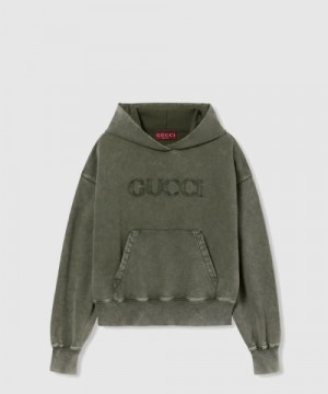 • 구찌 자수 코튼 저지 후드 스웨트셔츠