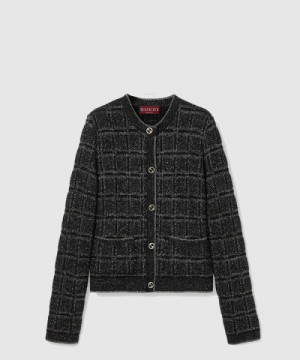 • 구찌 울 및 라메 체크 자카드 가디건