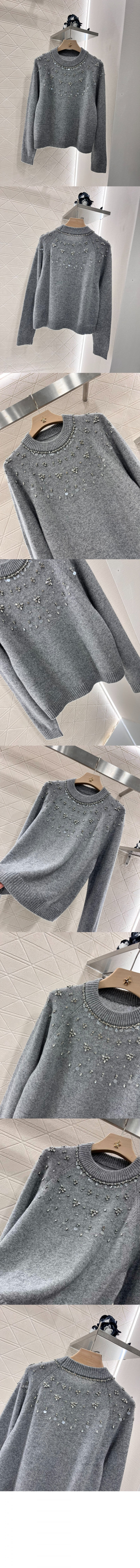 구찌 크리스탈 장식 울 캐시미어 혼합 스웨터