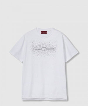 • 구찌 엠브로이더리 코튼 저지 티셔츠