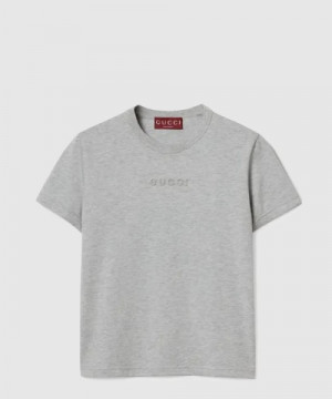 • 구찌 자수 코튼 저지 티셔츠