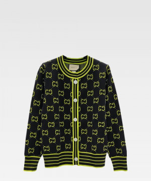 • 구찌 GG 로고 체크 소프트 울 브이넥 가디건