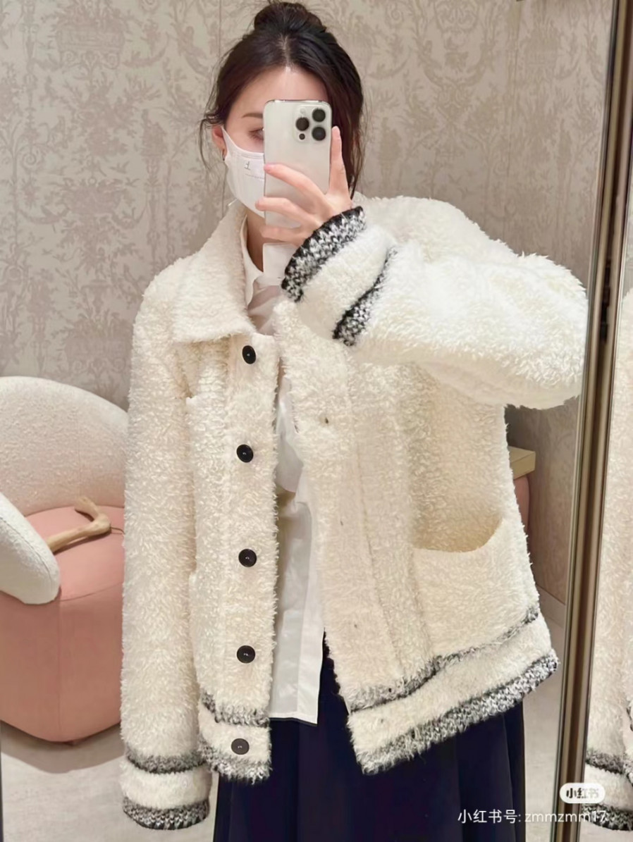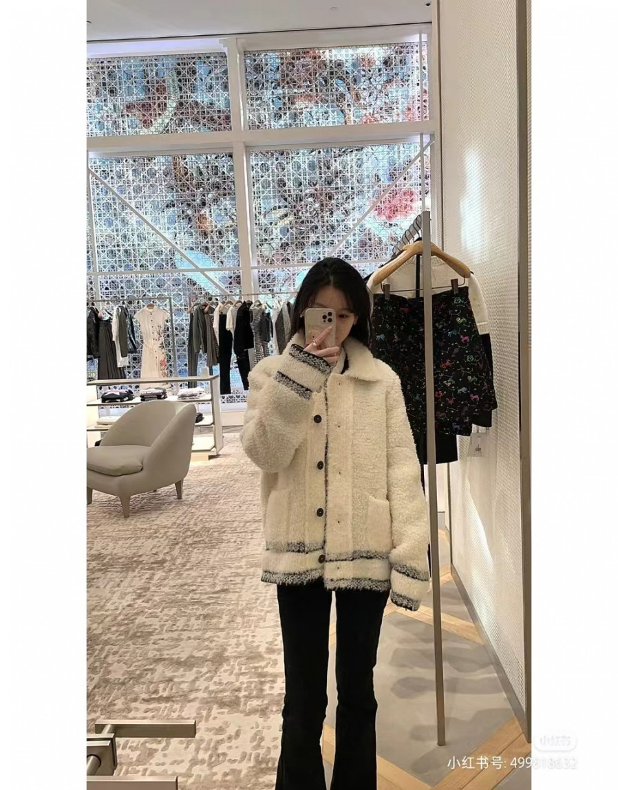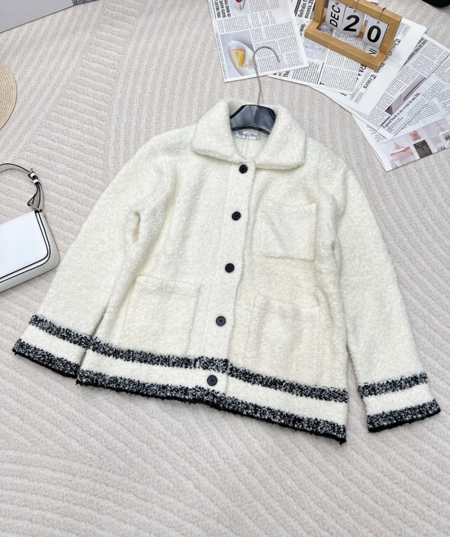 디올 Caro 재킷 에크루 울 블렌드 플리스 니트 > WOMAN