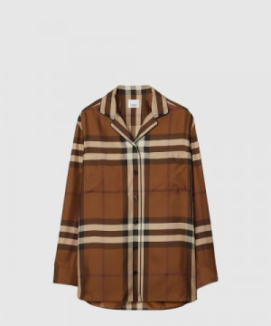 • 버버리 체크 실크 셔츠