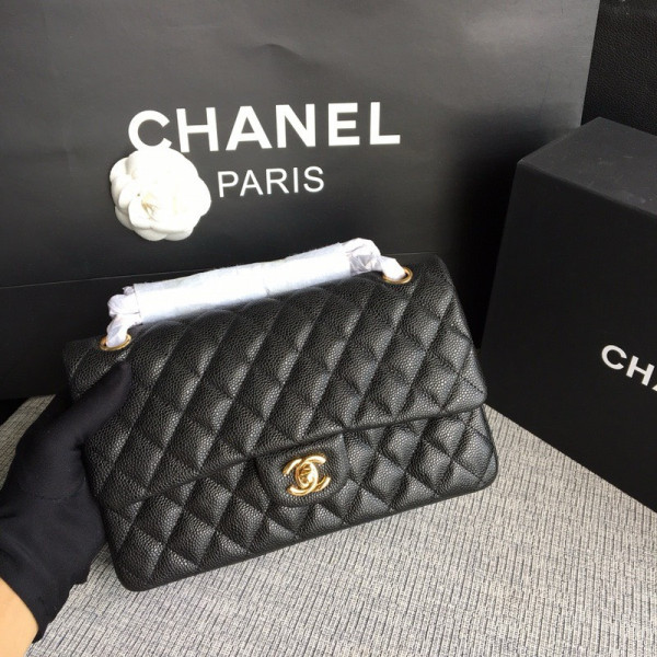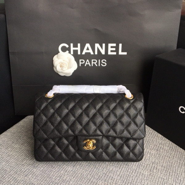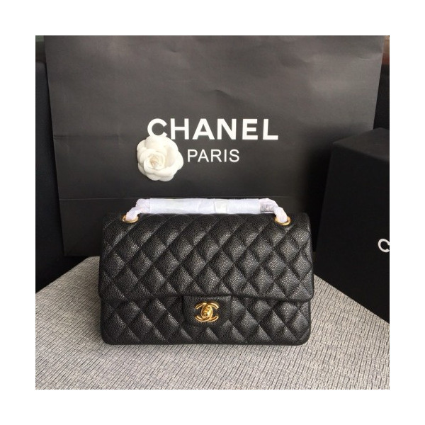 샤넬 미디움 클래식 플랩백 블랙 캐비어 카프스킨 금장 A01112