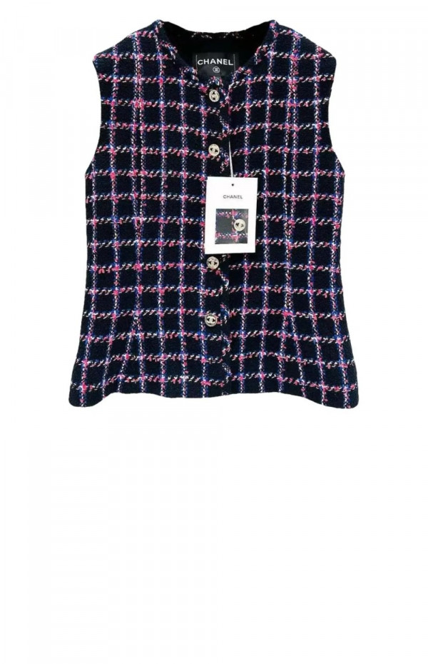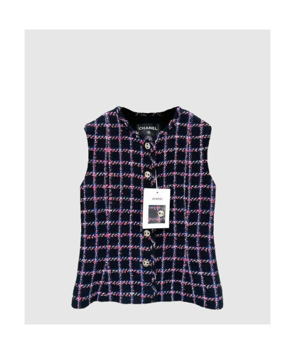 샤넬 프린트 민소매 재킷