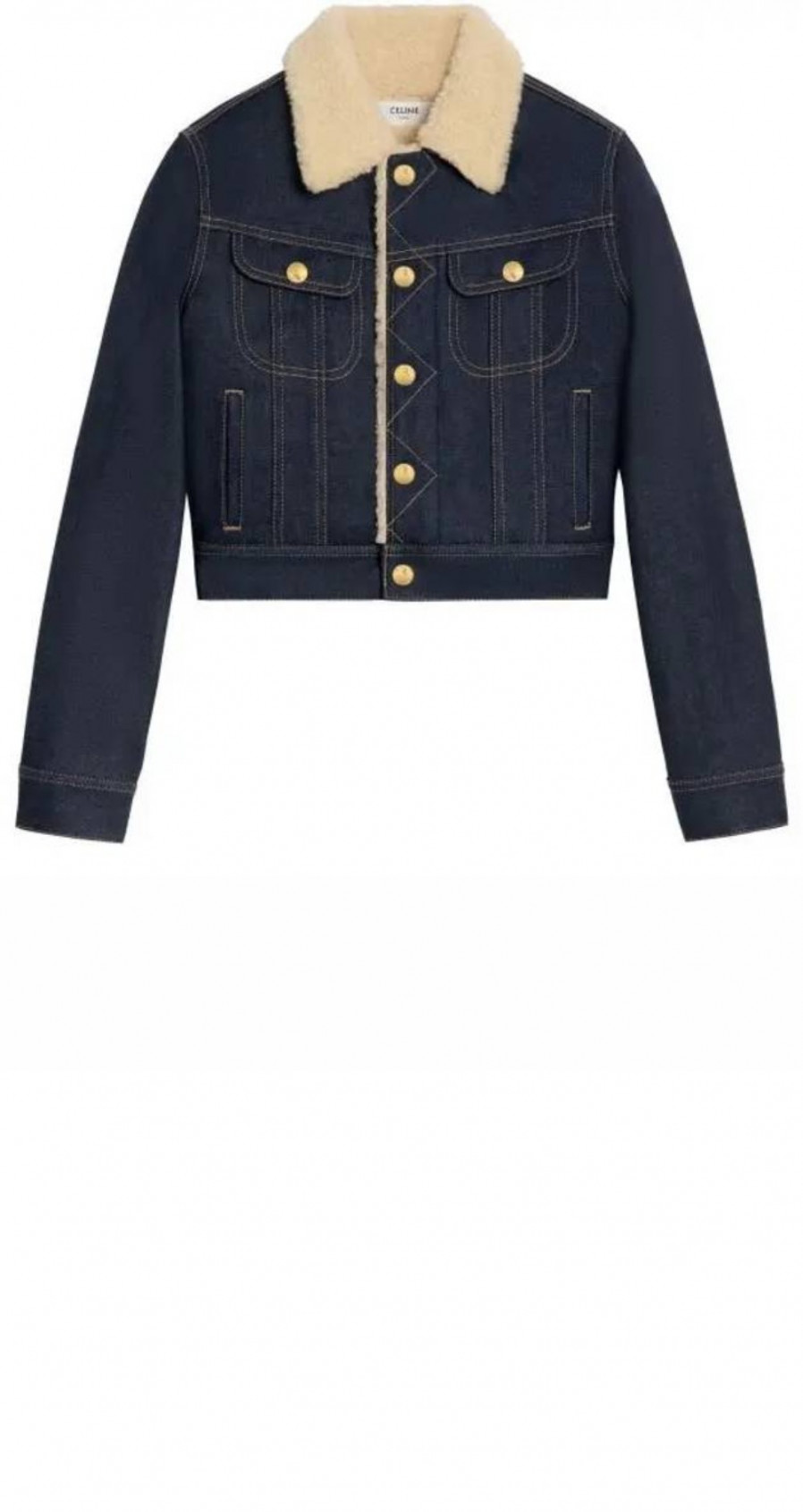 • 셀린느 트러커 셔파 데님 원단 자켓