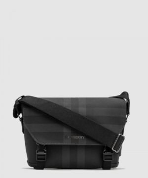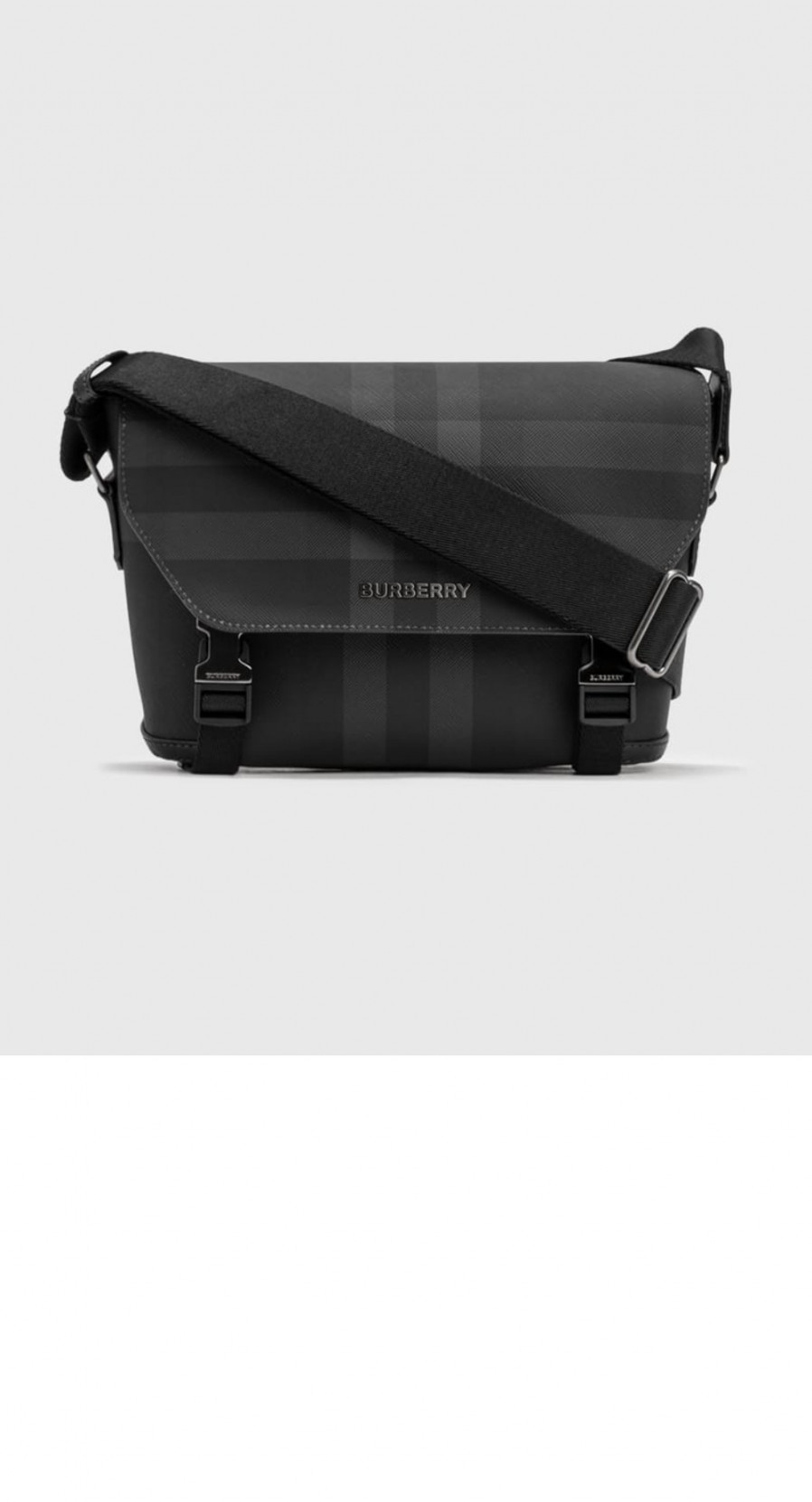 버버리 차콜 체크 레더 스몰 메신저백 80653351 > MEN