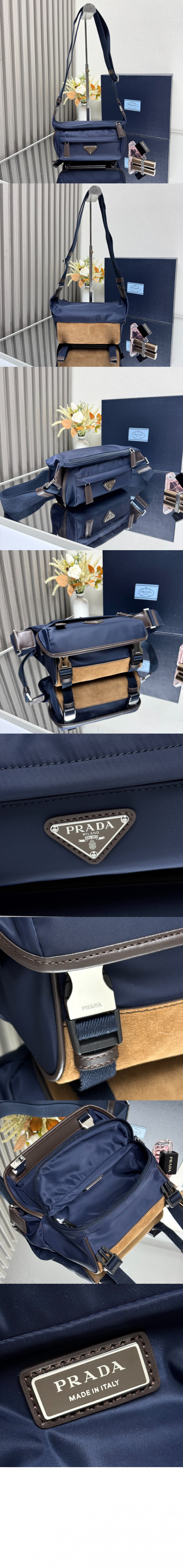 프라다 스몰 리나일론 및 가죽 숄더백 2VH171 > MEN