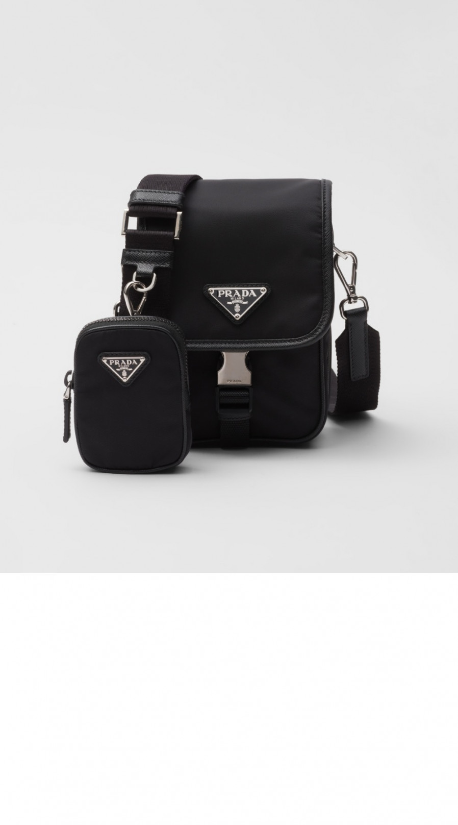 프라다 리나일론 및 사피아노 가죽 숄더백 2VD043 > MEN