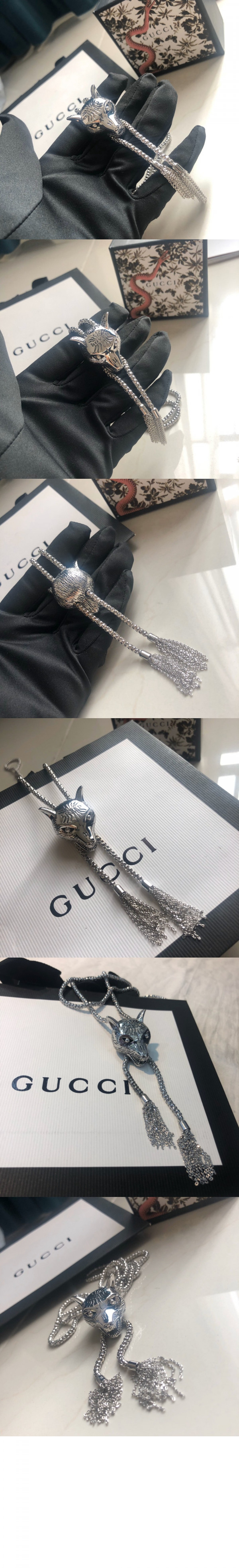구찌 울프 헤드 실버 목걸이 512014