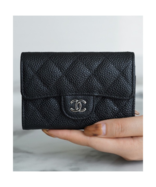 • 샤넬 클래식 똑딱이 카드슬립 카드지갑 캐비어 은장 AP0214