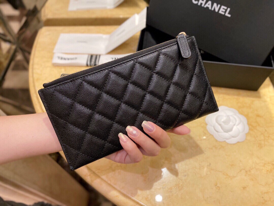 • 샤넬 슬림 장지갑 파우치 캐비어 금장 A81254